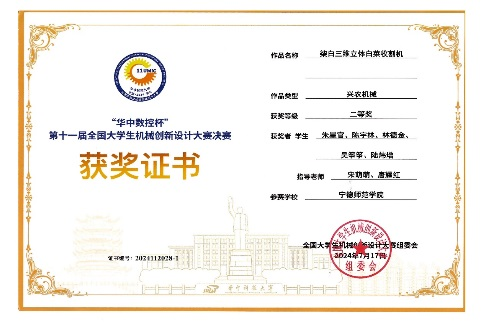 7月15日至18日,第十一届全国大学生机械创新设计大赛决赛在湖北武汉华中科技大学举行,来自全国730所高校的5600余项作品参加参赛。经校赛、省级选拔赛和国赛专家组初评与复审,澳门电子《柒白三维立体白菜收割机》和《“尝尝韭韭”韭菜收割打包机》荣获二等奖,这也是澳门电子参加此项赛事获得的最佳成绩。