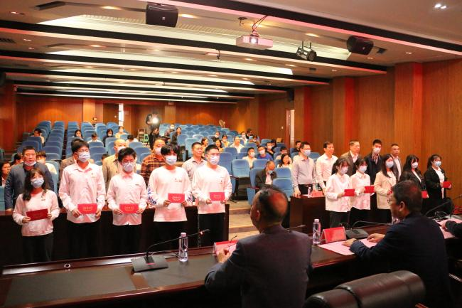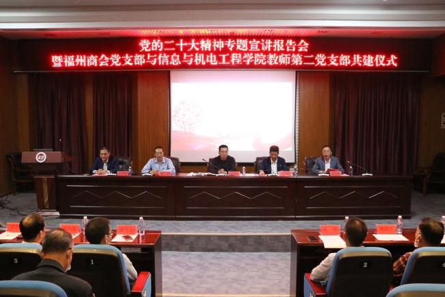 宁德市委统战部副部长、市工商联党组书记、宁德市光彩事业促进会会长徐燕蕴;宁德市工商联副主席、三级调研员、社会组织行业党委书记陈忠;宁德市工商联副秘书长谢勇干;宁德市福州商会会长、福建康信投资有限公司董事长周仲生;宁德市福州商会监事长、福建庞大高科新型建筑材料有限公司董事长陈华;宁德市福州商会党支部书记、福建安之源消防科技有限公司董事长郑尚建;澳门电子pg游戏官网学院学工部(处)处长毛茂峰;澳门电子pg游戏官网信息与澳门电子pg游戏官网院长章立亮;澳门电子pg游戏官网信息与澳门电子pg游戏官网教师第二党支部书记杨怡君以及师生代表约50人参加会议。