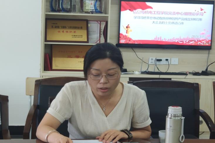 7月2日上午澳门电子在求是楼DA408会议室召开党委中心组理论学习,党委书记陈茂和主持会议。会议重温了习近平总书记在庆祝中国共产党成立100周年大会上的重要讲话精神。