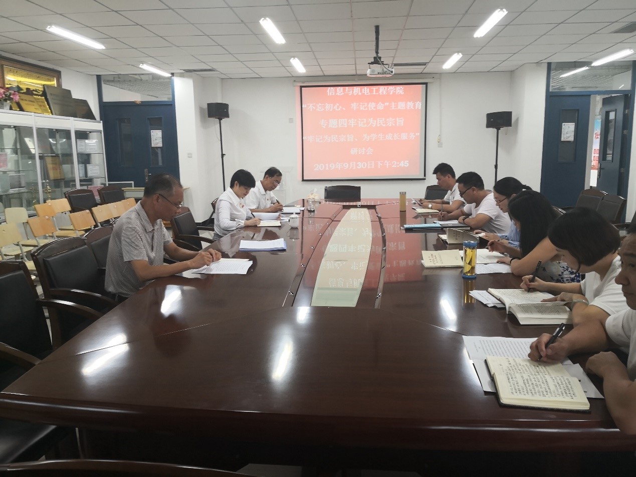 9月30日,我院在求是楼DA408召开 “不忘初心、牢记使命”主题教育集中学习研讨专题四方案。学院党委领导班子成员、党委委员、各党支部书记参会。