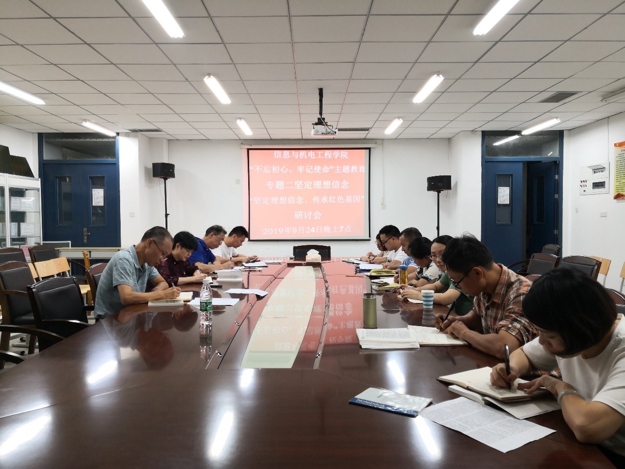 学院党委理论学习中心组于当天晚上7:00在求是楼408会议室召开学习会并有校第一巡回指导组成员到会进行指导,全体成员围绕“坚定理想信念,传承红色基因”主题进行学习讨论。