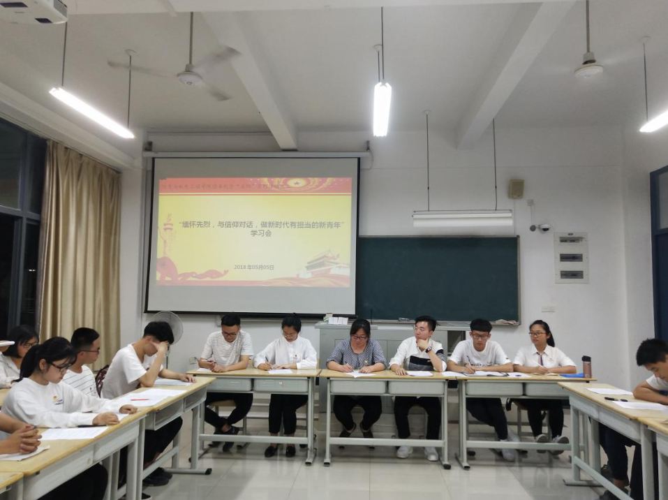 五四运动虽然已经过去99年了,但以爱国、进步、民主、科学为内涵的五四精神却依旧长存。为了弘扬五四精神,信息与澳门电子pg游戏官网团委于2018年05月05日在DB403教室组织开展“缅怀先烈,与信仰对话,做新时代有担当的新青年”学习会,该活动作为澳门电子纪念“五四”系列活动之一,院学工办兼团委负责人王秋菊老师及49名团员代表参加了会议。