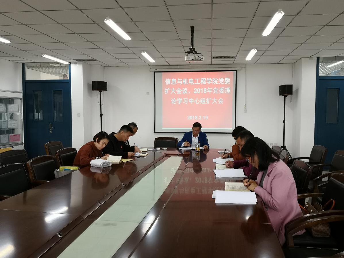 2018年3月19日上午10:00,信息与澳门电子pg游戏官网党委在求是楼A408会议室召开本学期第一次党委扩大会议及理论中心组学习,会议由院党委书记陈茂和同志主持。大家认真学习人民日报《习近平同志在福建宁德工作时反腐倡廉的生动实践》、学习苏罴同志先进事迹,重温《关于新形势下党内政治生活的若干准则《中国共产党党内监督条例》。学习会上,与会人员结合自己的工作实际和岗位职责谈体会、谈心得、谈感悟。