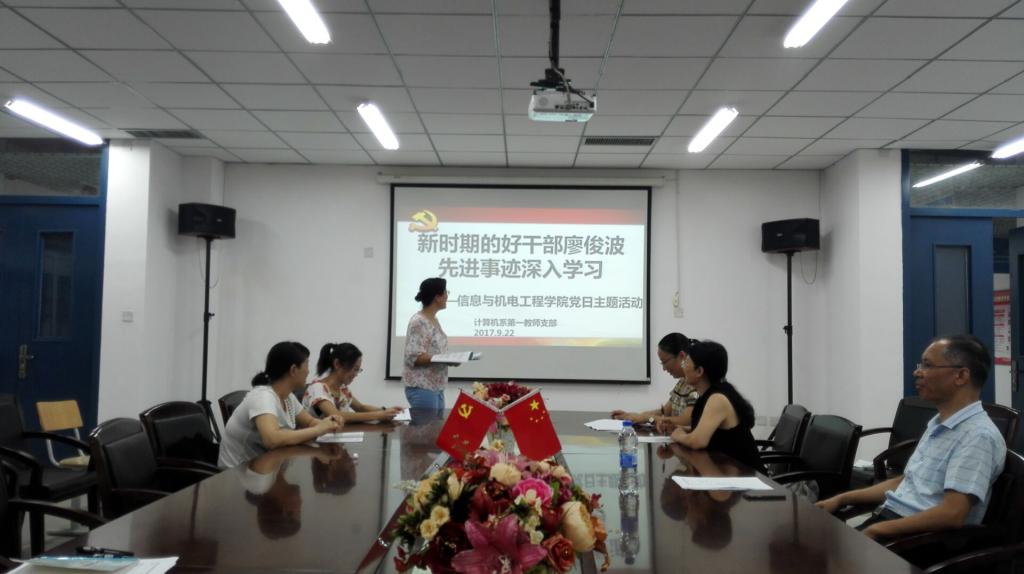 2017年9月22日16:20点,信息与澳门电子pg游戏官网计算机系教师第一支部在DA408会议室组织开展深入学习廖俊波同志先进事迹,争做一名优秀共产党员活动,章立亮、李豫颖、陈可华等本支部六位教师全部出席了本次活动。