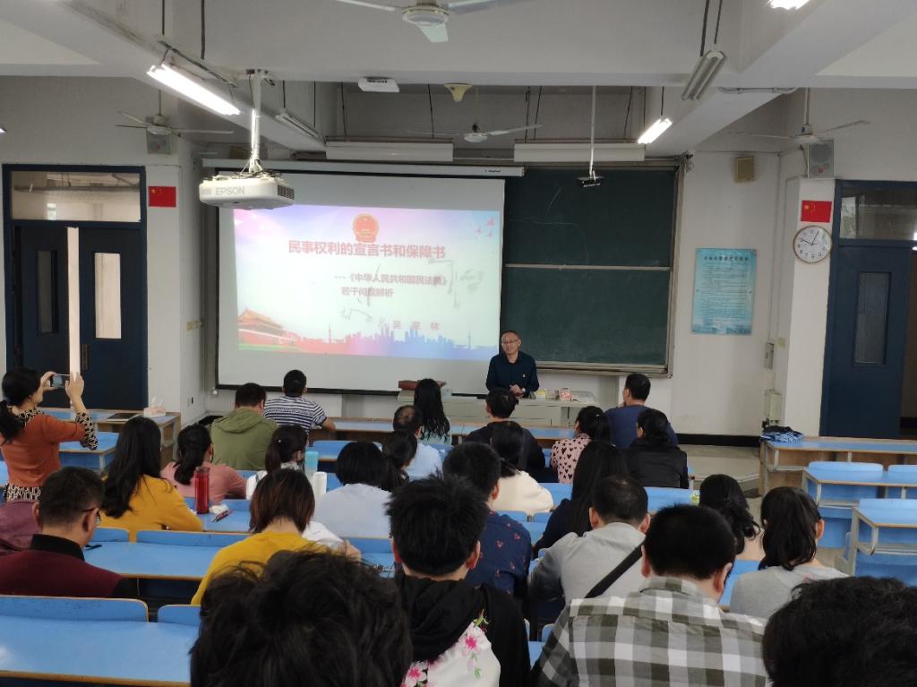 随后,澳门电子还邀请了马克思主义学院吴家林教授为全体教师做了题为《<中华人民共和国民法典>若干问题解析》的专题辅导讲座,讲座中,吴家林教授结合学习贯彻习近平总书记在中央政治局第二十次集体学习时的重要讲话精神,围绕民法典的编纂历程、体例结构、涉及民生的十大热点问题等方面,详细阐释了民法典的重要意义、基本要义,重点围绕民法典在制度上的创新规则、创新意义等方面作了系统讲解。