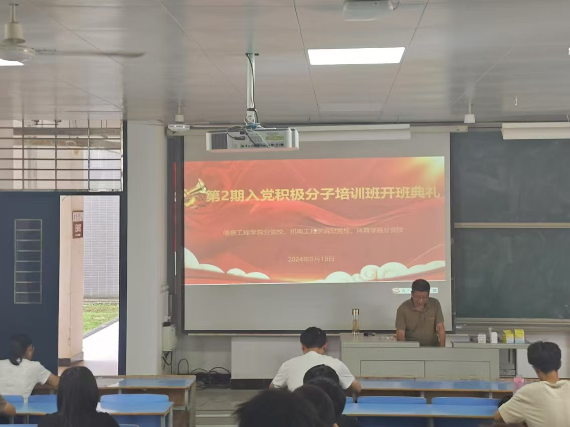 根据校党委党校的通知要求,澳门电子pg游戏官网、信息工程学院及体育学院分党校联合举办了中共澳门电子pg游戏官网委员会分党校第2期入党积极分子培训班,并于2024年9月18日下午在求是楼B101正式开班。信息工程学院党委书记毛茂峰作开班动员讲话和专题辅导报告。