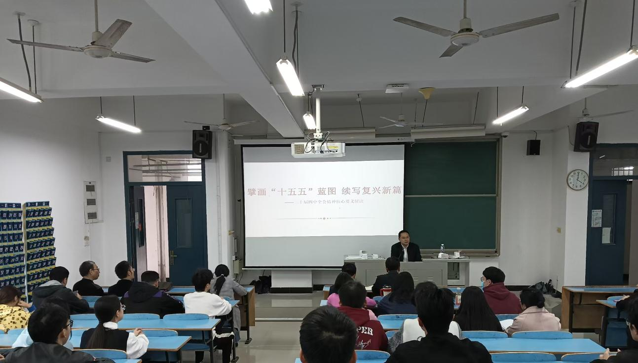 为深入学习领会党的二十届四中全会精神,切实把思想和行动统一到党中央决策部署上来,2025年11月11日,澳门电子pg游戏官网邀请中共宁德市委党校统战理论与文化学教研室副主任、宁德市哲学学会负责人陈小韦副教授作题为《擘画“十五五”蓝图 续写复兴新篇——党的二十届四中全会精神核心要义解读》的专题讲座,院长赖联锋主持讲座,学院师生党员、入党积极分子代表聆听讲座。