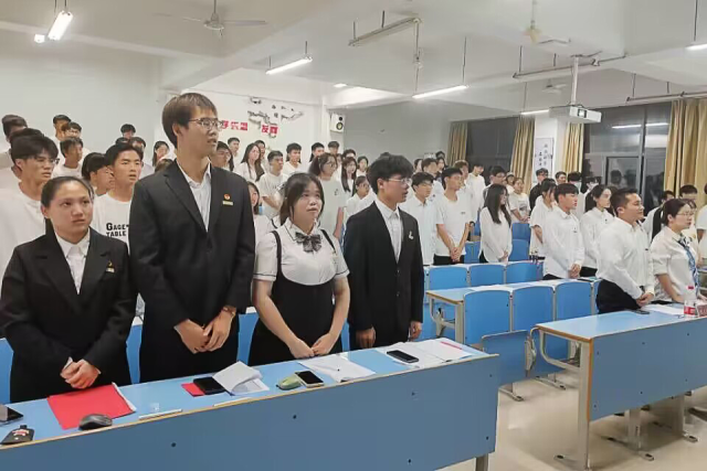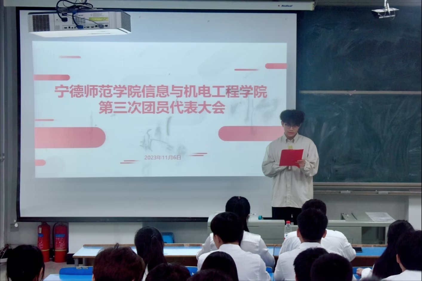 为全面深入贯彻党的二十大精神和共青团第十九次全国代表大会精神,进一步发挥好学生组织的桥梁纽带作用,汇聚青春智慧,点燃青春活力,澳门电子于2023年11月6日19时在求是楼DB201召开第三次团员代表大会。院团委书记王佳佳老师、辅导员陈上鑫老师莅临现场,澳门电子各班共76名团员代表参与会议。