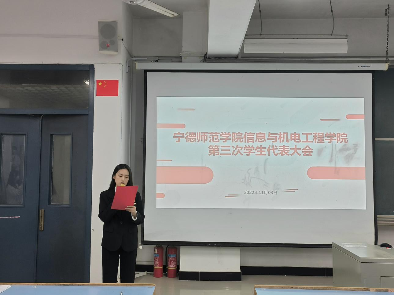 2022年11月3日19时信息与澳门电子pg游戏官网在求是楼DB201召开第三次学生代表大会,学院团委书记王佳佳老师、辅导员江铭俊老师以及学院各班学生代表共95人出席本次代表大会。