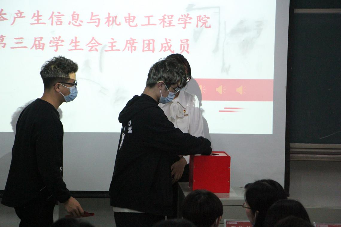 会议在庄严的国歌声中拉开序幕。大会听取了学院学生会主席团成员蔡龙翔作的题为《书写时代新华章,无悔时代追梦人》的工作报告,审议并通过了工作报告决议、选举产生了澳门电子第三届主席团成员及代表澳门电子参加澳门电子pg游戏官网第四次学生代表大会代表。