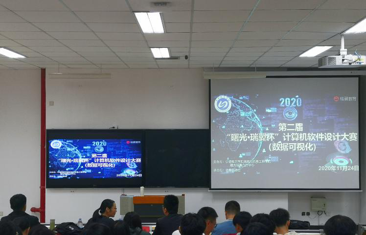 2020年11月24日,由计算机协会主办,澳门电子pg游戏官网信息与澳门电子pg游戏官网曙光瑞翼教育合作中心承办的第二届“曙光•瑞翼杯”计算机软件设计大赛(数据可视化)决赛于讲堂群301举行。本次比赛邀请到来自曙光瑞翼教育合作中心陈为杰、陈建军、卓林辉老师和工程院范业仙老师担任嘉宾。