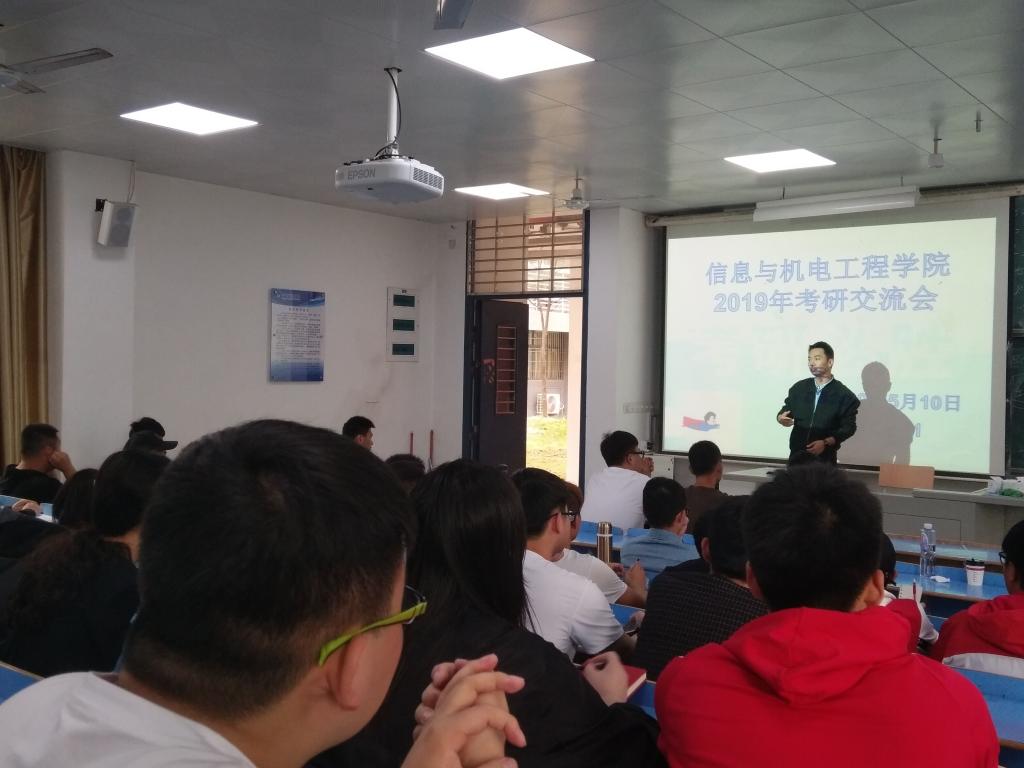 为了给澳门电子学生搭建与顺利考取研究生同学的交流学习平台,给正在准备考研的同学们传授考研经验、指点迷津,信息与澳门电子pg游戏官网于2019年5月10日下午14:30在求是楼B区101教室举办2019年考研交流会,到场的有赖联锋副院长、傅亮副书记,辅导员黄小燕、张春美,以及顺利考取研究生的澳门电子2019届毕业生席祥雲同学、牛秦川同学、陈雨哲同学,同时还有澳门电子部分准备考研的大学生。
