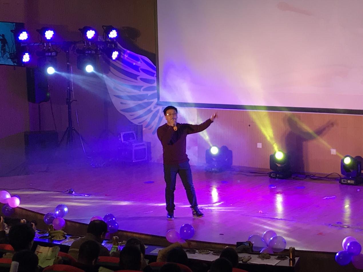 2017年11月25日晚,信息与澳门电子pg游戏官网主题为“起点•飞young”的迎新晚会在图书馆报告厅隆重举行。院党委书记陈茂和、院长张廷政、党委副书记傅亮等多位老师,2017级新生以及兄弟学院同学代表等近500人观看了演出。激动人心的迎新晚会在《made in danso cool》舞蹈中拉开了帷幕,伴随着主持人激情洋溢的主持和同学们热烈的掌声,院长张廷政教授为此次迎新晚会致辞,他代表学院领导对2017级新生的到来表示热烈的欢迎,希望同学们在宁师这片沃土上更好的锻造和磨炼自我,同时预祝此次晚会圆满成功。