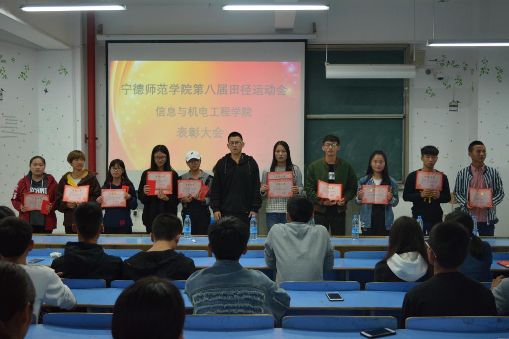 11月7日,信息与机电工程院第八届运动会表彰大会在求实楼C301举行,院党委陈茂和书记,团委老师傅亮以及全体运动会及学生会代表参与了本次大会,对运动会期间取得优异成绩的运动员进行表彰。