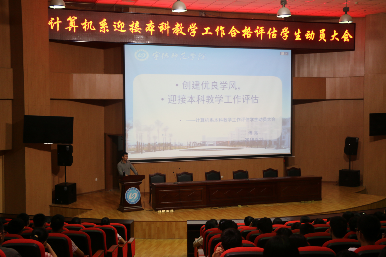 为迎接教育部专家对澳门电子本科教学合格评估工作,增强同学们对本科教学合格评估基本知识的学习与理解,9月13日下午16点,计算机系在图书馆报告厅召开了本科教学合格评估学生动员大会。各专职辅导员及全系400多名在校生参加了动员大会。