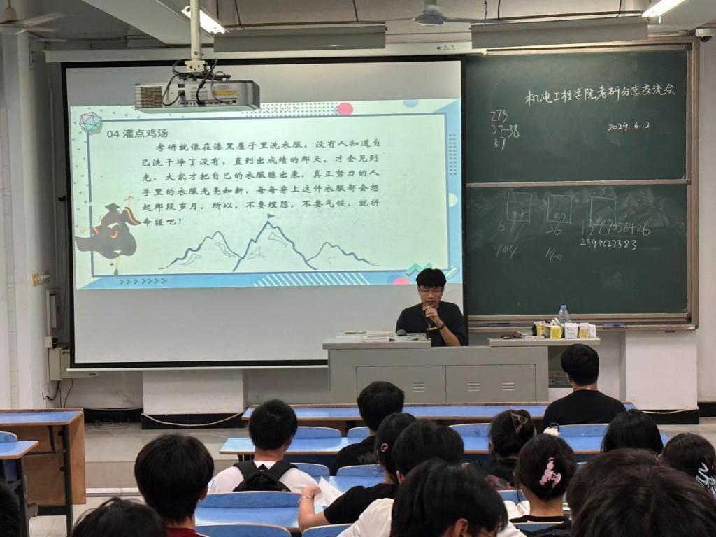 吴星宇同学生动的讲述了自己考研期间的心态管理,他建议同学们要坚定自己的目标,在考研路上总是会遇到许多困难,要有破釜沉舟不给自己留后路的决心,注重劳逸结合,保持良好的心态才是能够最高效率学习的法宝,可以尝试一些解压的方式,例如进行体育锻炼,既可以强壮自己的体魄,也可以缓解长时间学习的压抑。