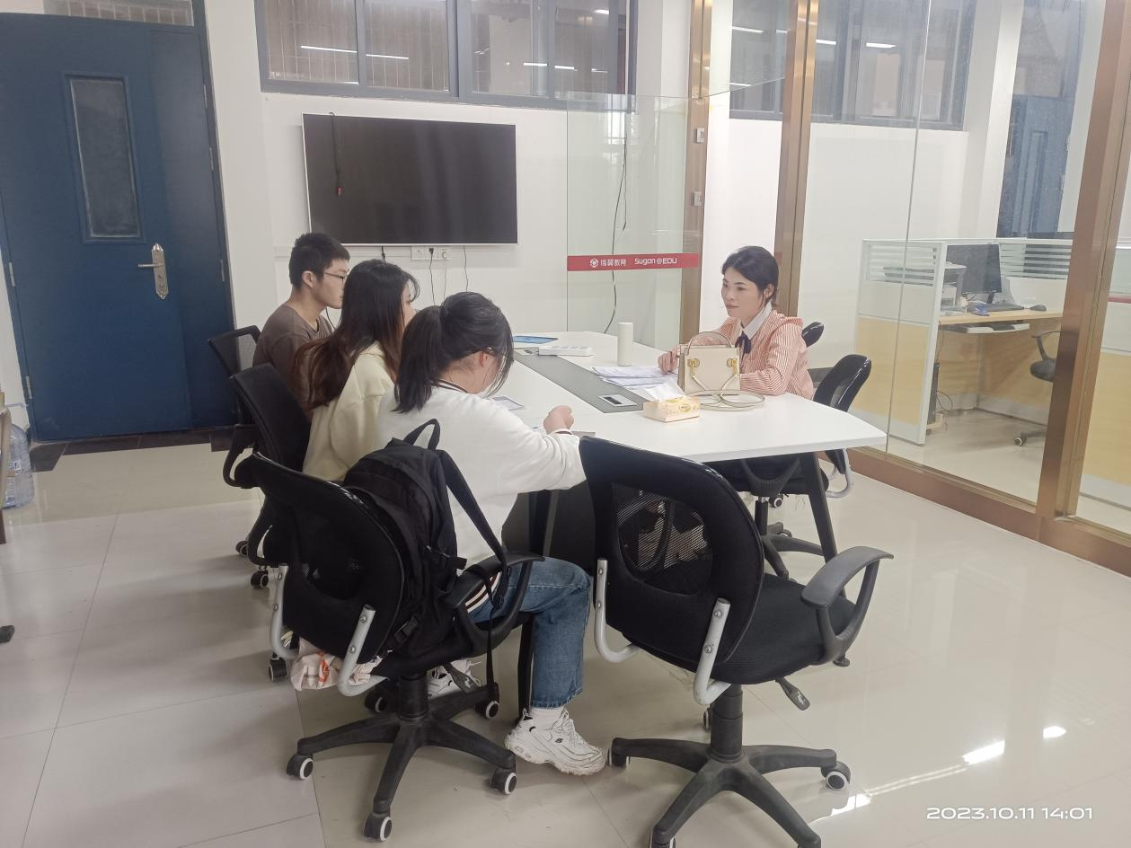 此次就业指导工作针对数据科学与大数据技术专业学生,学生三人一组进行专项就业指导工作。陈宝莹老师帮助学生分析在求职的过程中有关就业方向选择、职业规划制定、求职技巧梳理等方面的经验;根据学生简历进行一对一指导优化;鼓励大家应立足当下,抓住就业的“黄金期”,克服“慢就业”心态,树立正确的就业观与择业观。