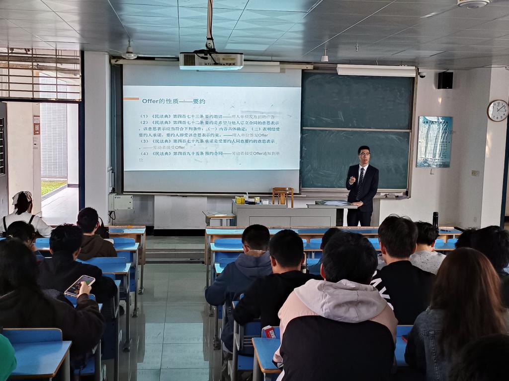 2023年3月21日15时,信息与澳门电子pg游戏官网邀请福建福宁律师事务所陈恒辉律师在求是楼DB101为2019届毕业生开展“毕业就业避坑法律指南”科普讲座。