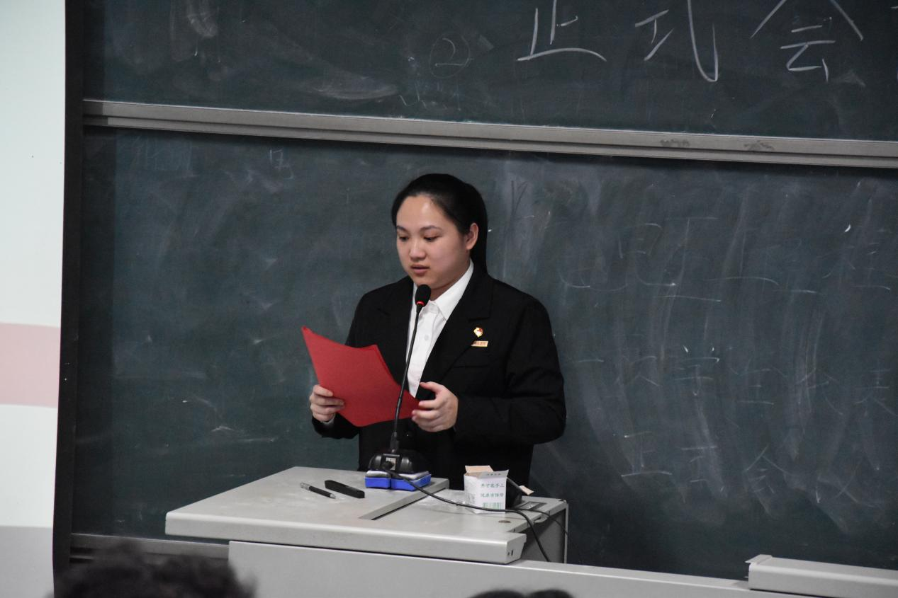 院学生工作办公室主任王佳佳老师发表了讲话,对新当选的团委委员表示祝贺,并对未来共青团工作提出了要求和期望,鼓励全体学生积极参与学院的建设和发展。