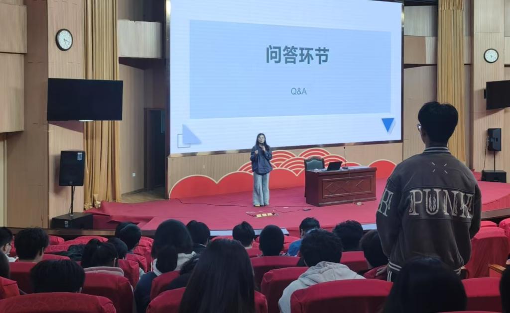 讲座中,蔡佳敏结合自身从校园到职场的成长经历,围绕行业与职业分析、职业决策、求职策略、职场适应四大板块展开分享。她分析了近年机电行业的就业情况,强调“选择比努力更重要”,建议同学们结合个人实际情况制定明确的目标;在求职策略环节,她详细讲解了简历优化、面试技巧及实习积累的重要性;谈及职场适应时,她以生动案例提醒大家“专业能力是基石,但沟通与学习力更是长远发展的密钥”。在互动环节中,同学们踊跃提问,蔡佳敏都一一耐心解答,并鼓励学弟学妹们:“机电人的职业方程没有标准解,但保持好奇、敢于试错,一定能找到自己的最优解。”