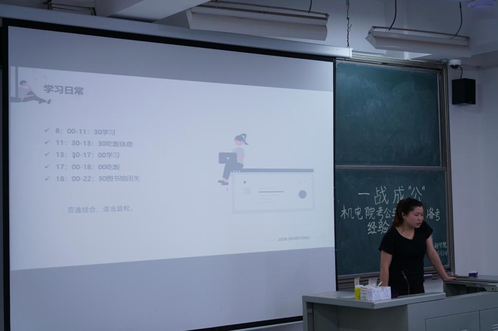 赖雅洁同学以“精准施策”为主题,深入浅出地解析了国家电网的备考之道。她总结,备考就像一场精心策划的战役:“备考如同行军打仗,必须知己知彼。仔细研读考试大纲,就像拿到了敌方的布防图。”她用通俗易懂的语言,为众学子制定了一套详细的复习规划。
