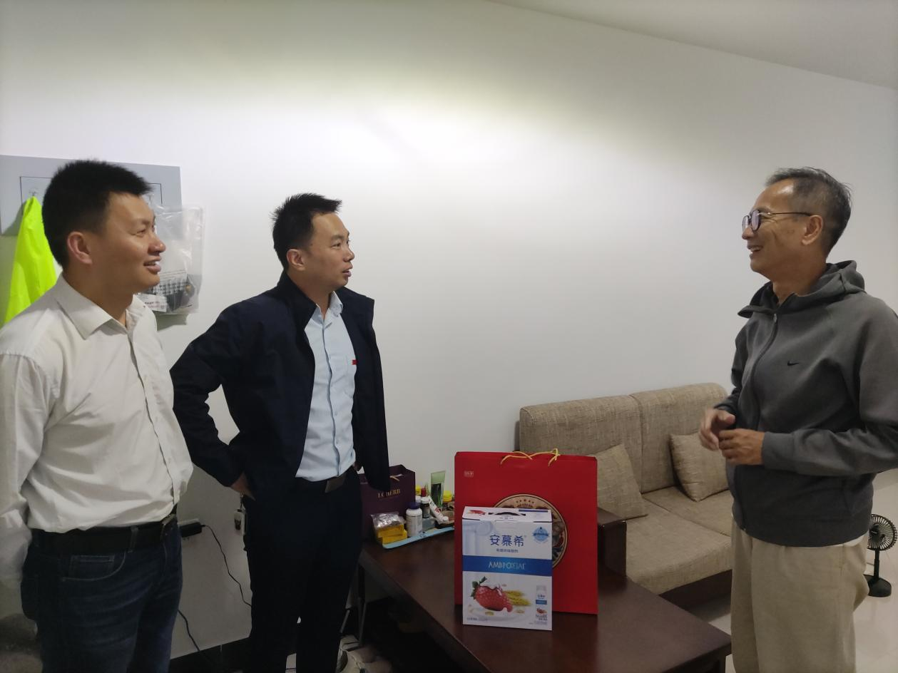 9月28日,在中秋、国庆双节来临之际,信息与澳门电子pg游戏官网副院长赖联锋、党委副书记傅亮前往教师公寓向台籍教师申冀治表达节日问候,并对申老师在学院工作和教学上的辛勤付出表示感谢。