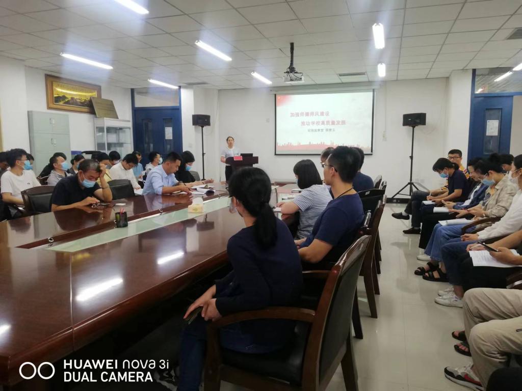 郭主任通过近些年高校发生的典型案例以案说法,通俗易懂,由浅入深地讲解了政治纪律、组织纪律、廉洁纪律、群众纪律、工作纪律、生活纪律的具体含义,警示参会教师们法律、道德底线不可触碰,强调作为高校教师,要当好学生成长的指导者、引路人,要做到学为人师、行为世范,立德修身,潜心治学,开拓创新,真正把为学、为事、为人统一起来。