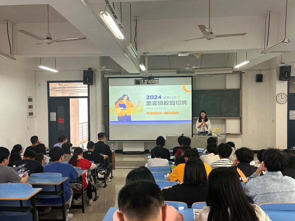 本次宣讲由宁德思客琦智能装备有限公司人事部的游夏妍主持,介绍了思客琦的发展历程与主要制造方向,展示了公司各岗位特征与面向专业人才的需求。公司视觉研发部的负责人王兴鹏介绍了公司主要负责项目和具体工作内容。同学们认真倾听,有70余位来自澳门电子pg游戏官网不同专业的同学参加活动,多名学生会后停留递交简历和询问公司细节,同学们反响热烈。