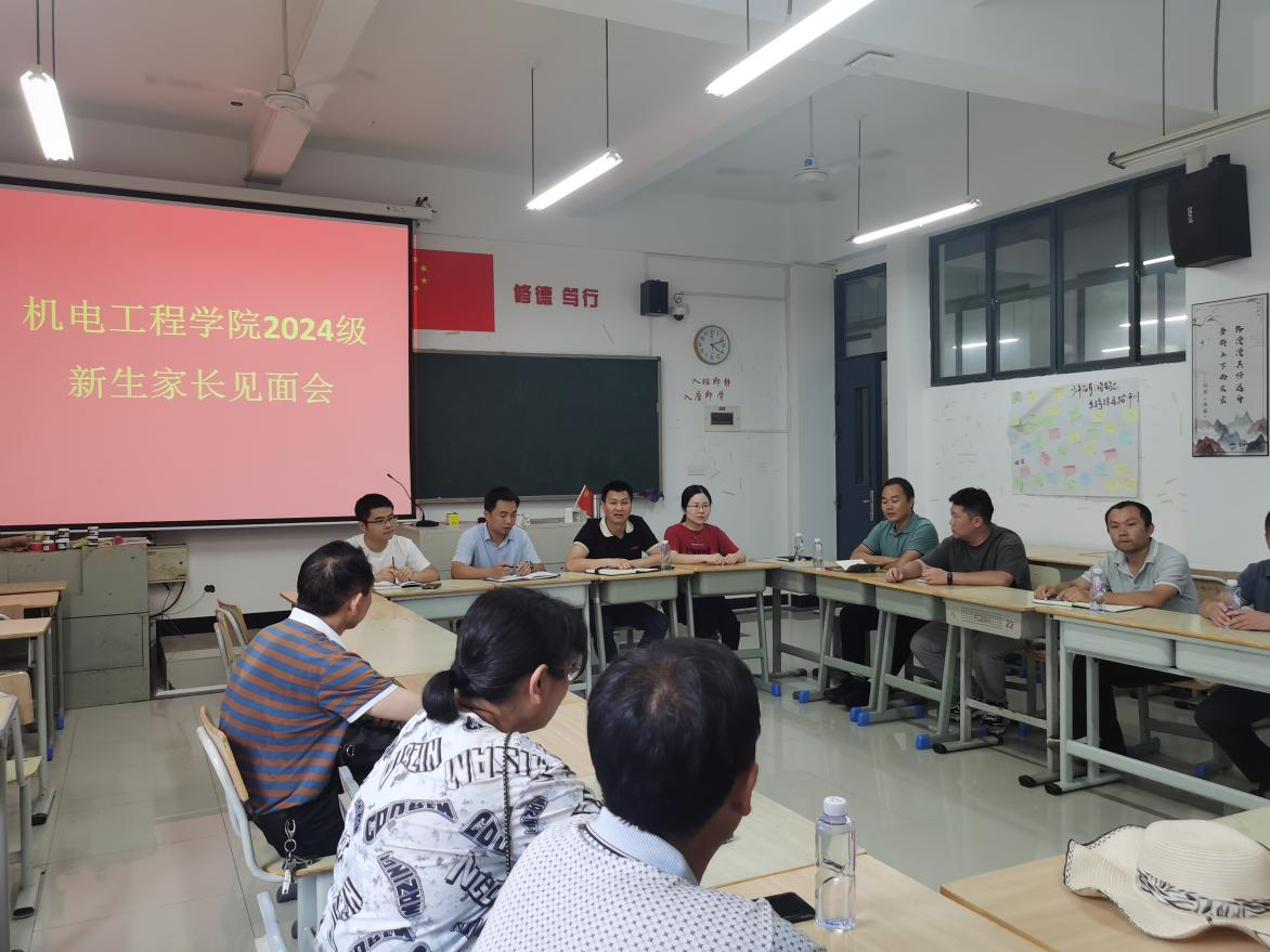 9月8日下午,为推动家校双方良性互动,学院举办2024级新生家长见面会。院党委书记傅亮、院长赖联锋和系主任、学工班主任、党支部书记等老师,2024级新生家长出席本次会议。傅亮书记代表学院对新生家长的到来表示热烈欢迎和衷心感谢。他谈到,家、校、校友会三方合作对学生发展具有深远影响。赖联锋院长围绕机电工程学院发展历史、师资力量、办学特点等,鼓励学生知行合一,在实践中提升自身素养。会议现场,家长围绕教学、活动、就业等方面提出疑问,老师耐心解答,现场气氛热烈。