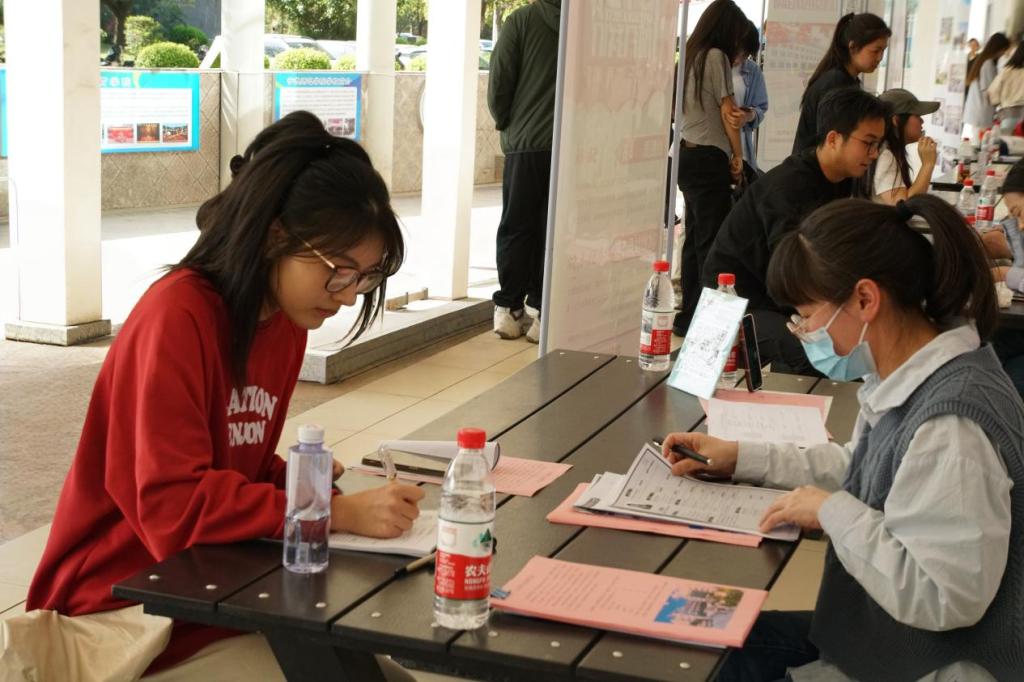 在展区里,福鼎市人力资源和社会保障综合事务中心副主任池荣龙、福鼎市企业与企业家联合会兼合党支部书记方守润等领导、企业代表与应届毕业生们亲切交谈,关切询问求职进展,并结合行业趋势为学子们提出就业建议。福鼎市丰泰化油器制造有限公司人事部门负责人张方志反馈:“本次招聘会精准触达对口专业学生,人才质量高、匹配度高,为行业创新发展注入新鲜血液”。
