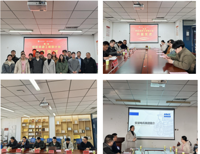1月16日,澳门电子pg游戏官网与安波电机集团有限公司联合培养的第一届电机卓越工程师计划班正式开班。安波电机集团人力资源部副经理陈斌霞、技术部副经理魏承辉,以及澳门电子pg游戏官网领导班子共同出席了启动仪式。